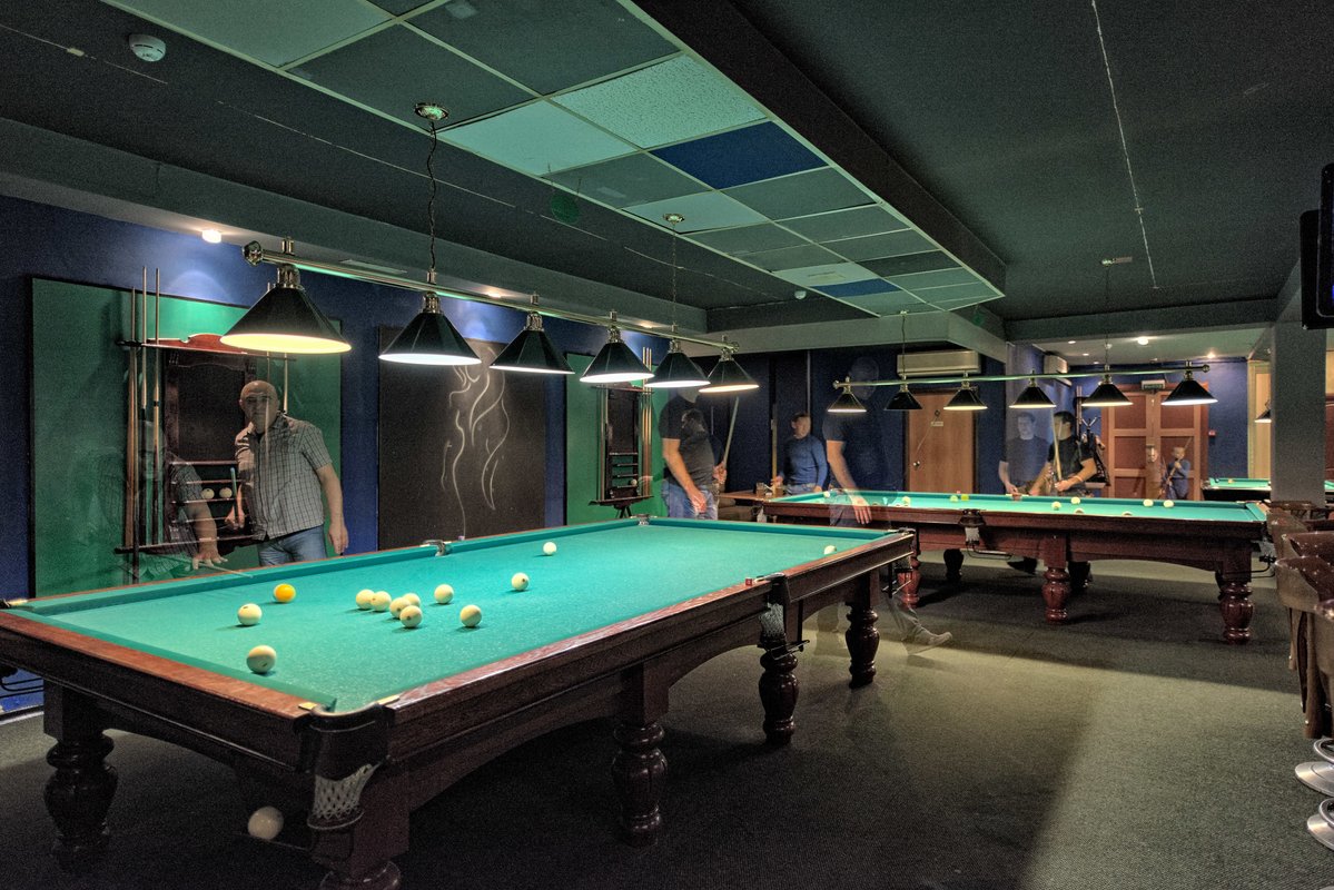 Отличная бильярдная!Все столы перетянуты новым сукном.Чай,кофе,пиво можно заказать у официантки,которая принесёт все из ресторана прямо к бильярду на столик.Нет громкой навязчивой музыки.Есть парковка у входа в клуб. Доброжелательно настроенные маркёры. До 16:00 , по будням,цена на игру всего 100 руб в час!!