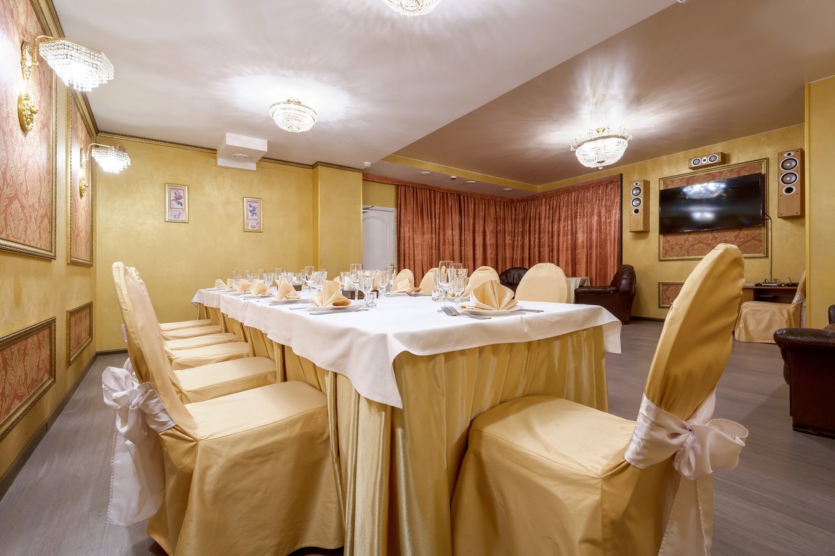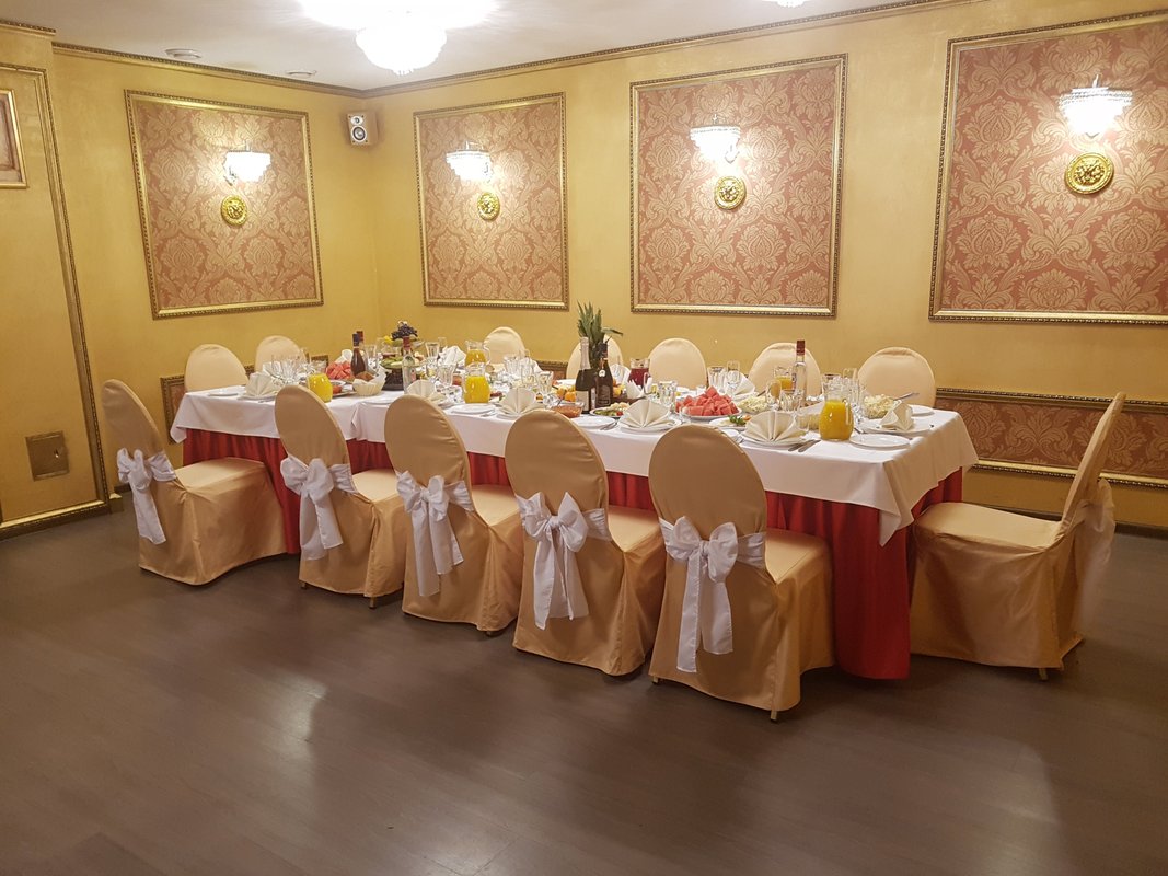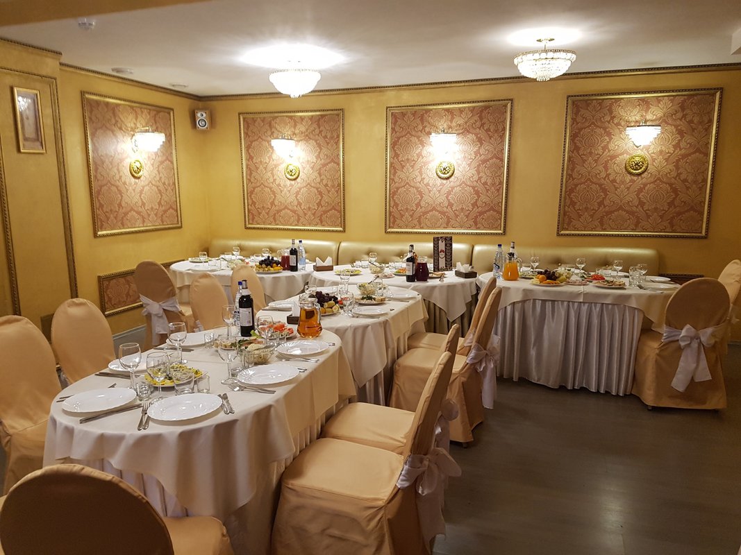 Мы выбрали данный ресторан для проведения праздника, заказали банкет на 25 июля. Нас встретила администратор, который хорошо отработала. Администратор показала банкетный зал, все рассказала и объяснила, дала рекомендации по выбору блюд, показала меню, сориентировала по ценам. Банкетный зал хорошо обустроен, столы накрыты, есть техника и караоке. Музыку решили ставить свою, воспользуемся техникой. Для нас ресторан удобно расположен.